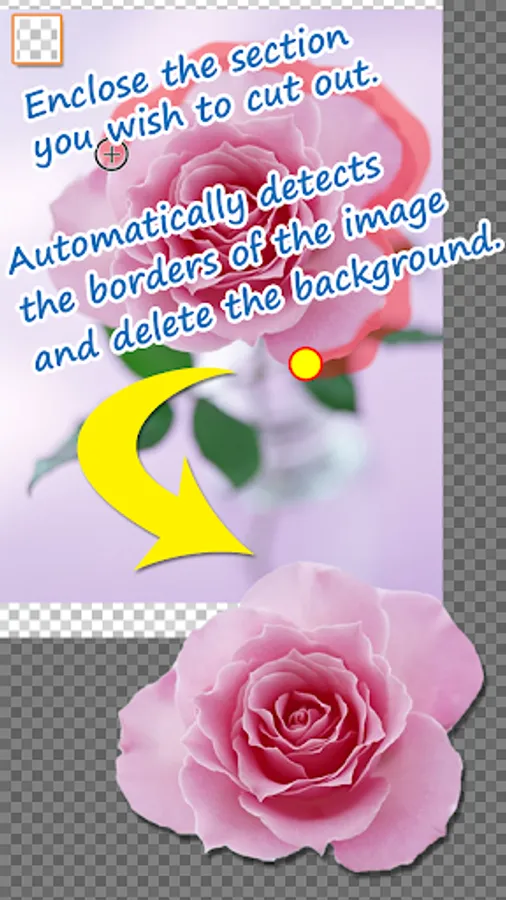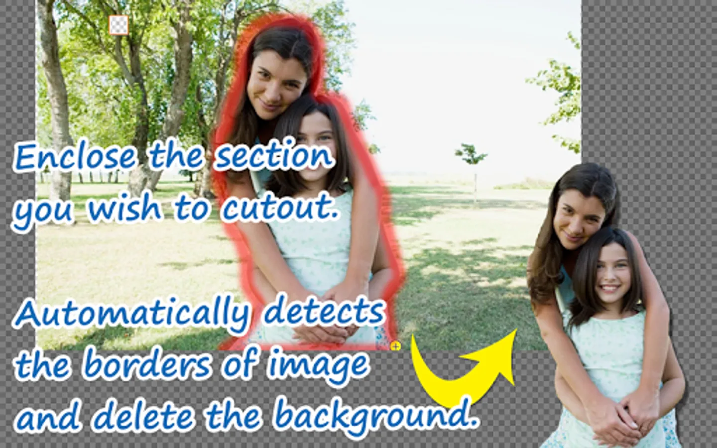 After enclosing the section you wish to cut out, the app automatically detects the borders of the image, and produce a highly precise cutout without the need to carefully trace around the image.