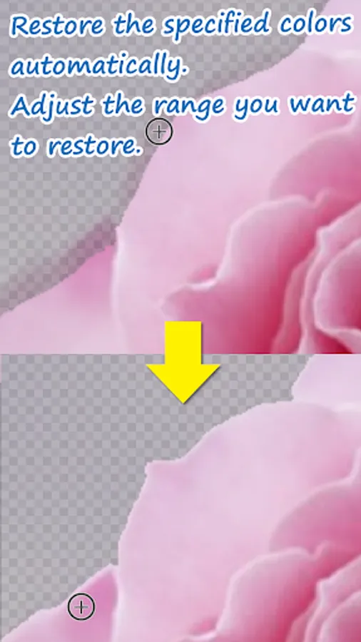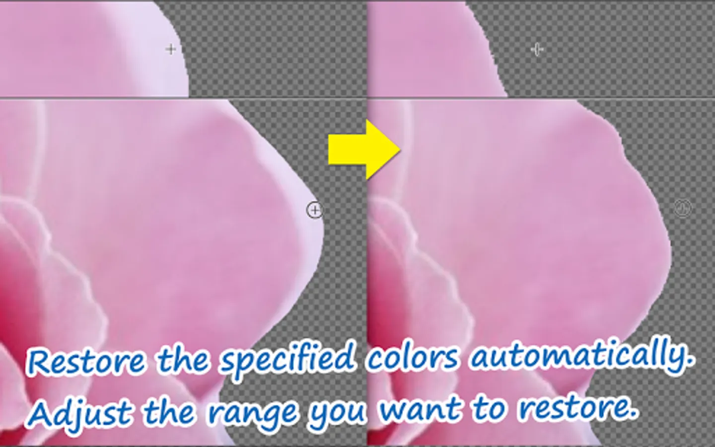 -- Automatic deletion/restoration by setting color via tapping (similar colors automatically detected, includes function to adjust selected range)