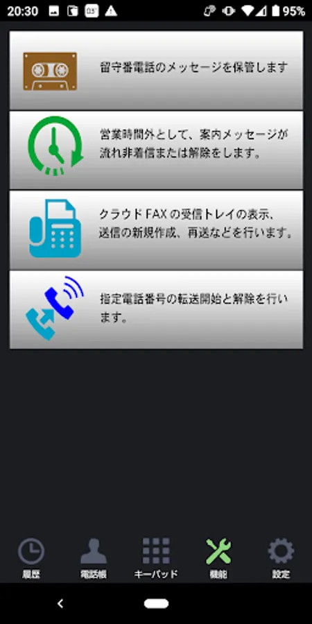 You can make, receive, and make calls with the smartphone app, and you can also send and receive faxes with the app, so there is no need to install a fax machine in the office.