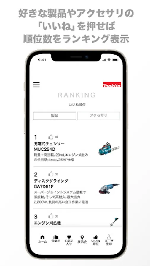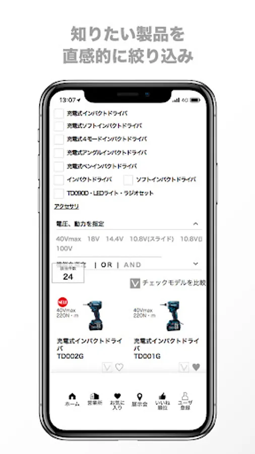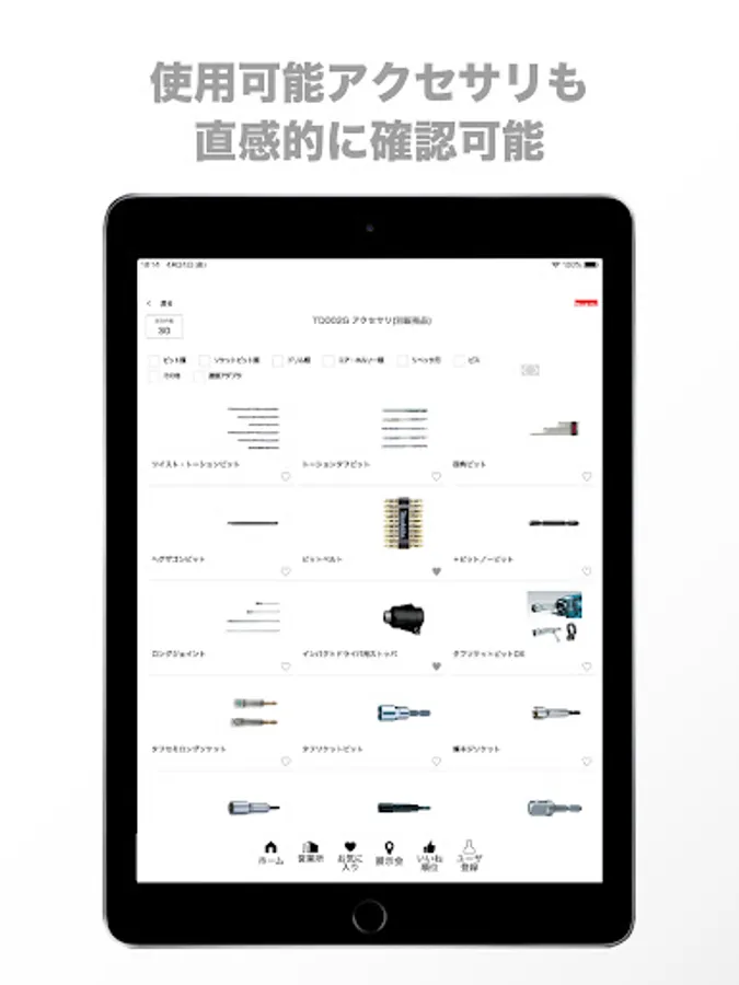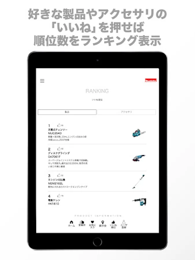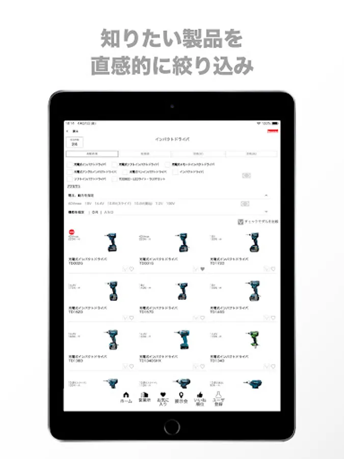 ◆We can look for Makita product quickly. Various methods such as word search, voice search, category, model number, Japanese syllabary, battery voltage are available.
