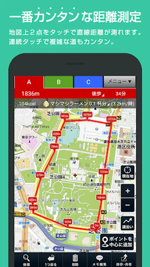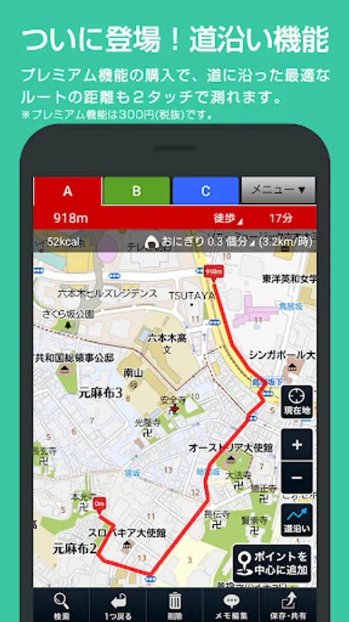 If you become a premium member, the advertisement will be hidden and you can measure the distance on a wider screen.
