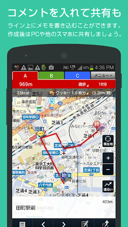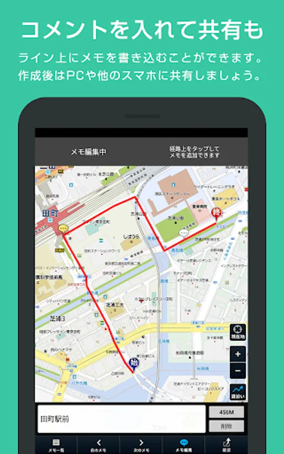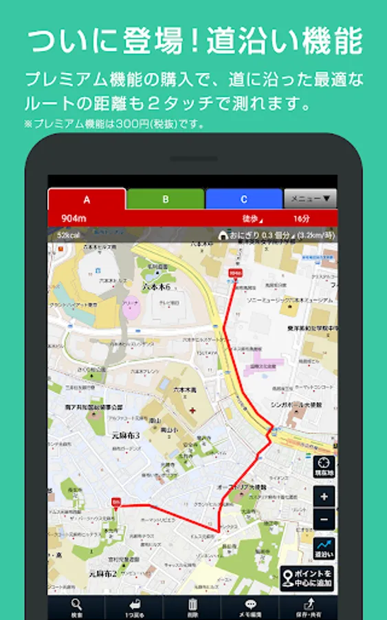 ――By tapping the two points, the starting point and the destination, you can automatically draw the optimum line along the road.
