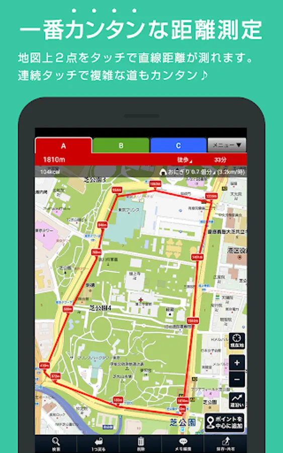 You can easily measure the distance to nearby spots such as stations and convenience stores.