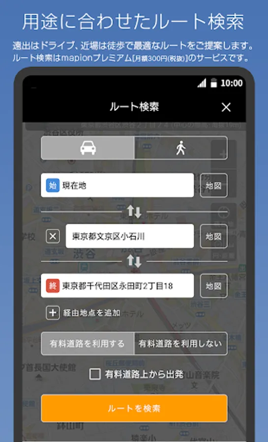 Tap and hold the map on the Mapion app and tap the address to display the map code.