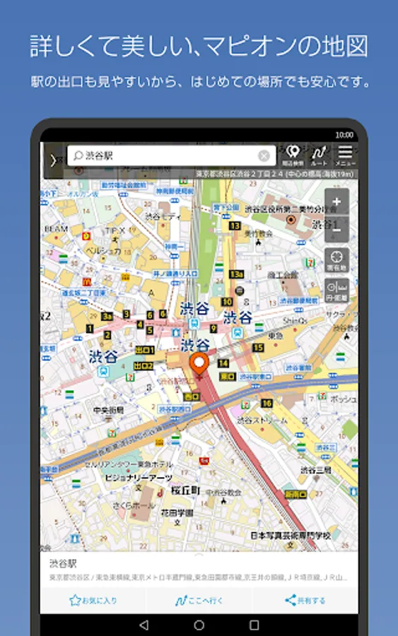 While highlighting necessary information such as station exits, detailed information is also posted, and the color coding of each city in the administrative world (city, ward, town, village, town Oaza, chome) and beautiful graphics like a paper map are applied. You can experience it at.
