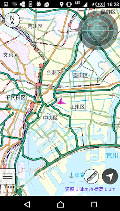 ・Current location, altitude and speed displayed in conjunction with the built-in Android GPS