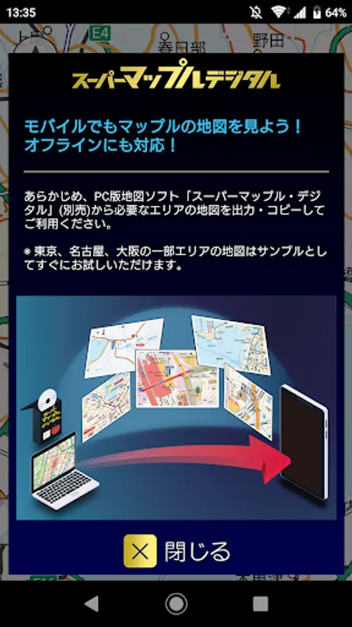 This is a map application for Android devices that comes with Mapple Co., Ltd.'s PC map software "Super Mapple Digital*".
