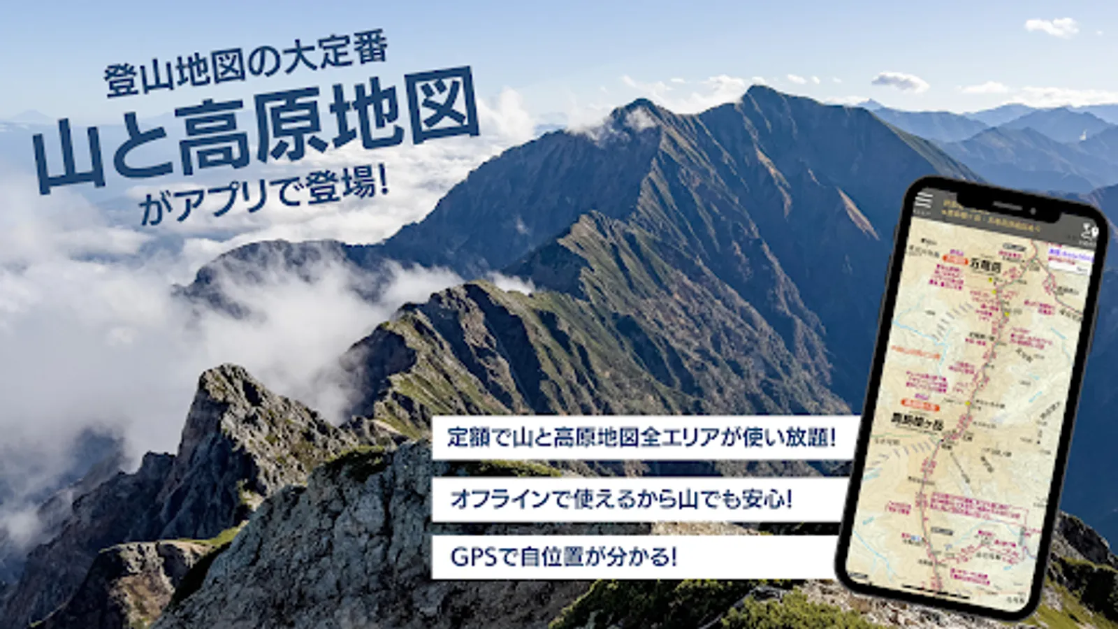 The map is downloaded in advance and saved on the smartphone, so it can be used even in mountains where radio waves do not reach.