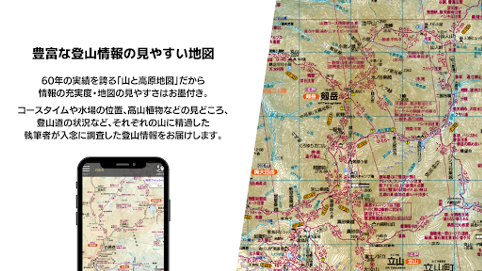 The "Mountain and Plateau Map" boasts a track record of over 50 years, so the ease of viewing the map is No. 1!