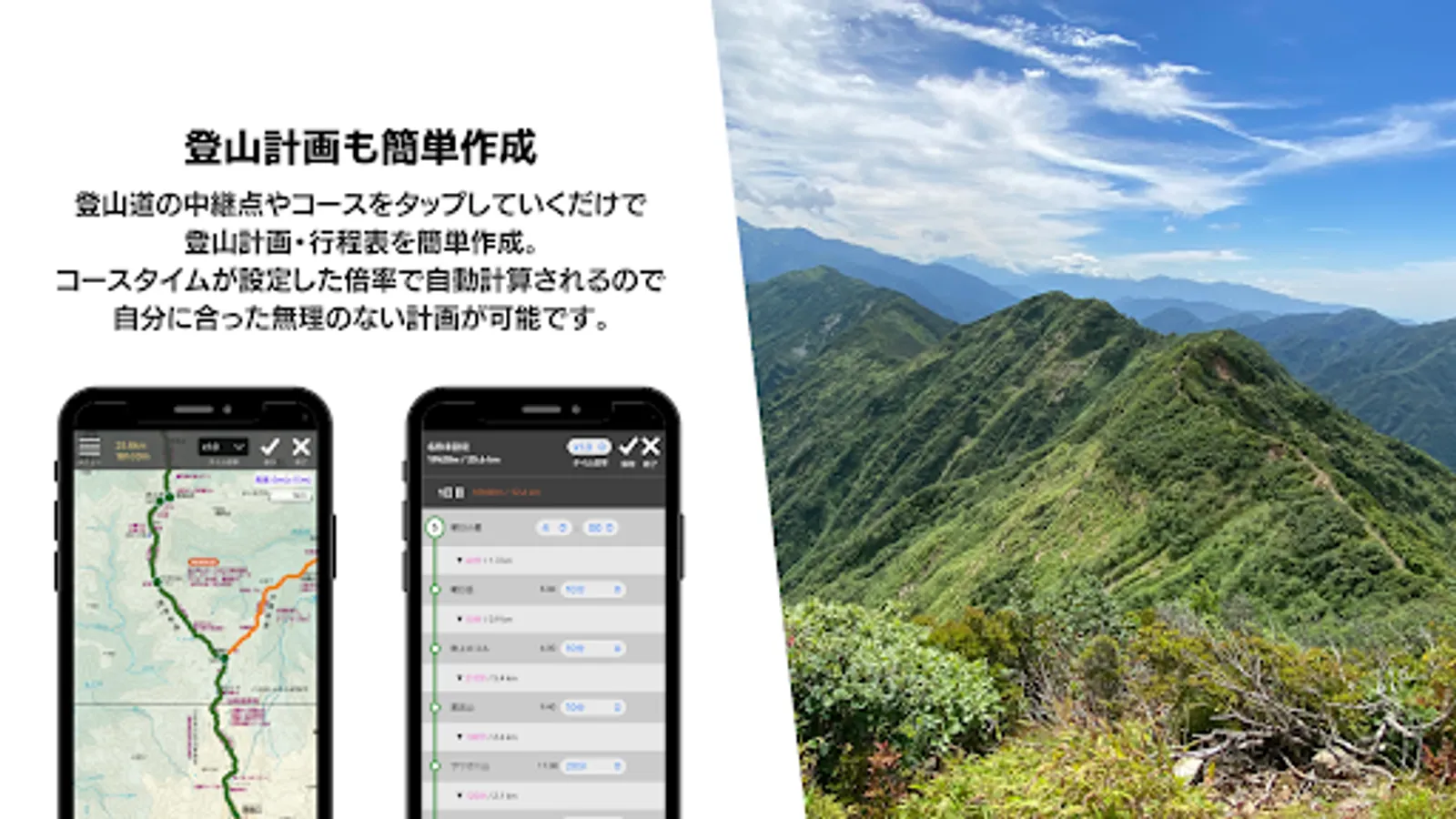 You can easily create a mountain climbing plan and itinerary just by tapping points on the map.