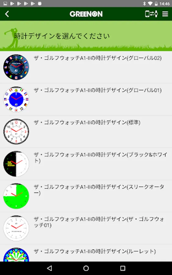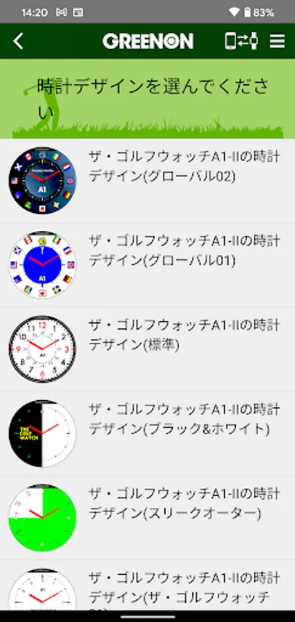 Send play data acquired by Green On The Golf Watch to your smartphone or tablet via Bluetooth (BLE) communication to view and manage play data, transfer pin position data from your smartphone or tablet, change golf watch system settings, and course data. and firmware can be updated.