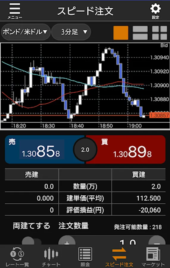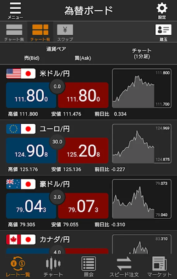 You can place an order with one tap while watching the exchange rate that is automatically updated. In addition, with "Chart Speed Order", you can place orders while viewing the chart screen, so you can trade with reference to exchange rate trends and technical indicators.
