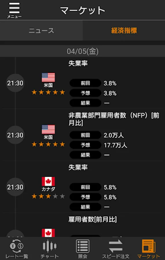 You can view news such as breaking news on important indicators, remarks by key figures from each country, and market information.
