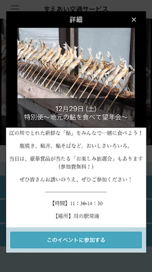 本アプリは実証実験アプリのため、ご利用には広島県三次市作木および川西地区の運営事業者への会員登録が必要です。