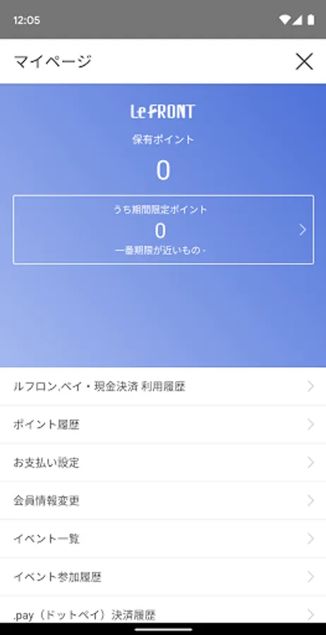・ If you use "Le FRONT Pay" for shopping, the rate of Le Fron points will be doubled (2 points will be given for every 100 yen (tax included) paid).