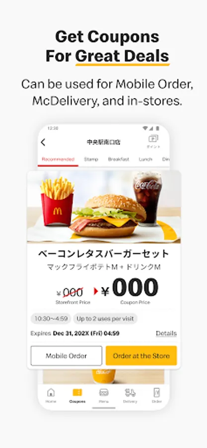 McDonald's official app for Japan has always given you access to coupons and other valuable information. Now you can place an order right from the phone, with contactless payment. Take your time to choose what you want, and skip the order line.
