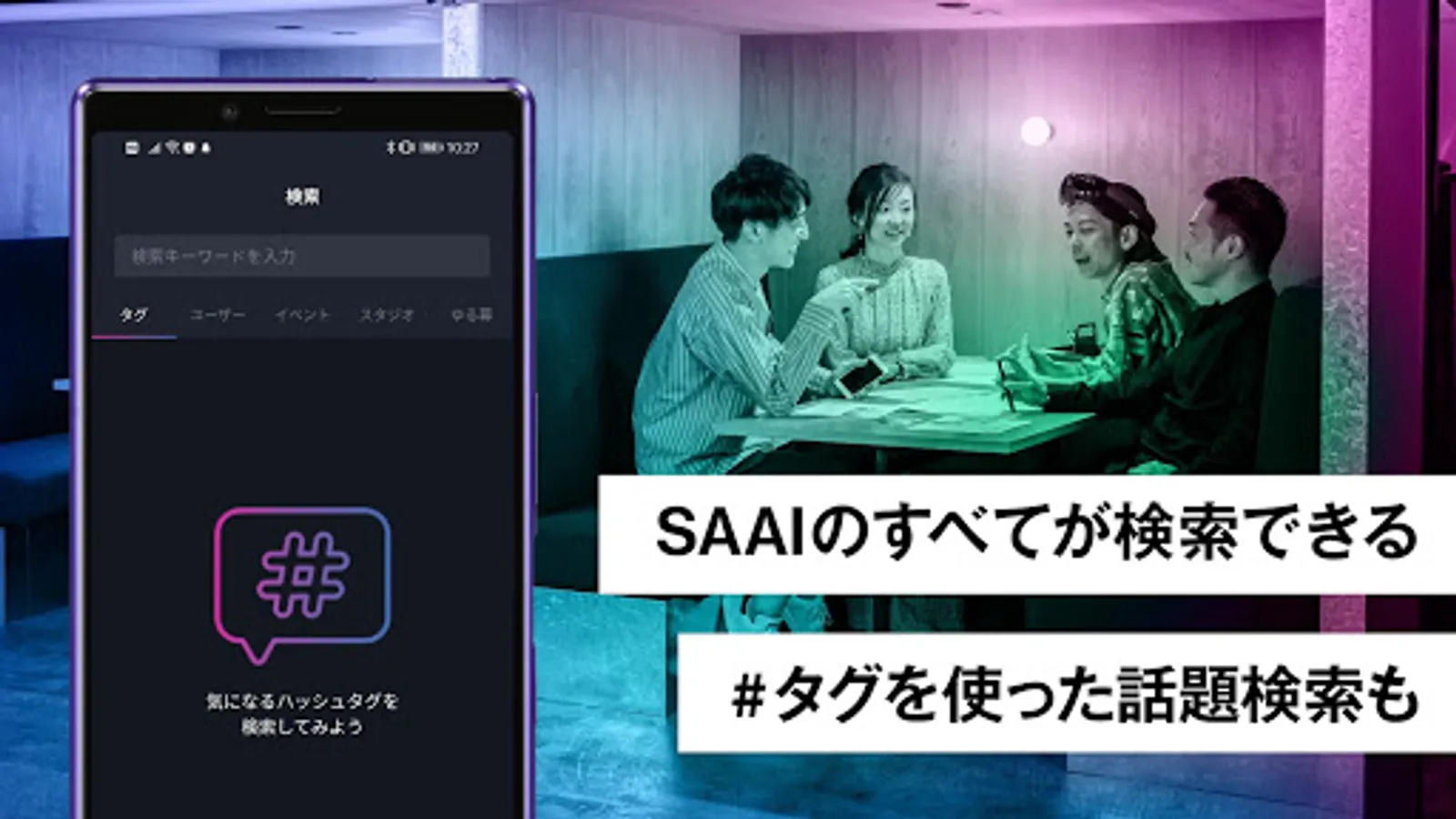 In addition to users, events and recruitment, you can search for keywords that are hot topics in SAAI and words that you are interested in by using #tag search. Utilizing the search function will transform SAAI into a more convenient community.