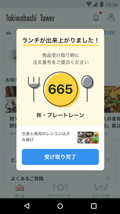 You can order and settle lunch for MY Shokudo Dining on the 3rd floor of Tokiwabashi Tower from the app without lining up in a crowded line.