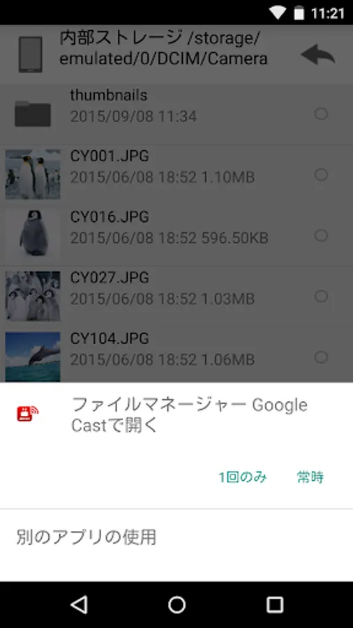 After installing this app, you can cast photos, videos and music files stored on your device or USB memory on "File Manager" to Google Cast compatible devices such as Chromecast and NexusPlayer.