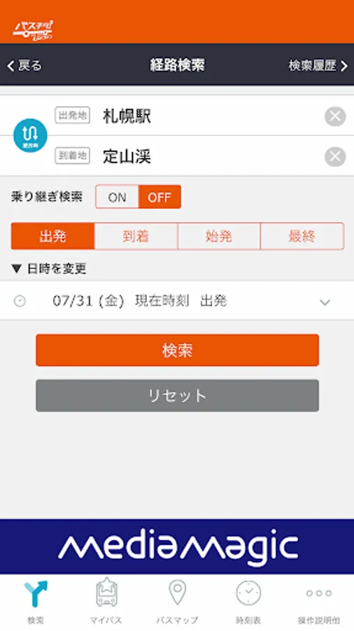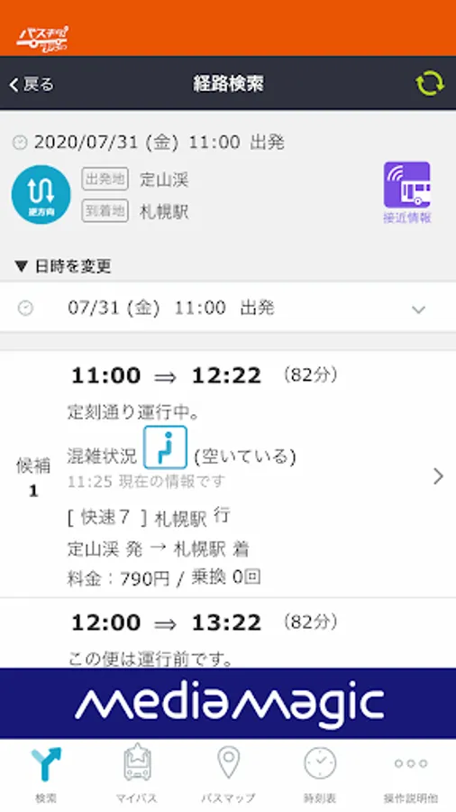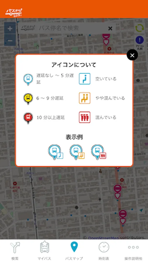You can search for bus routes and operating status.