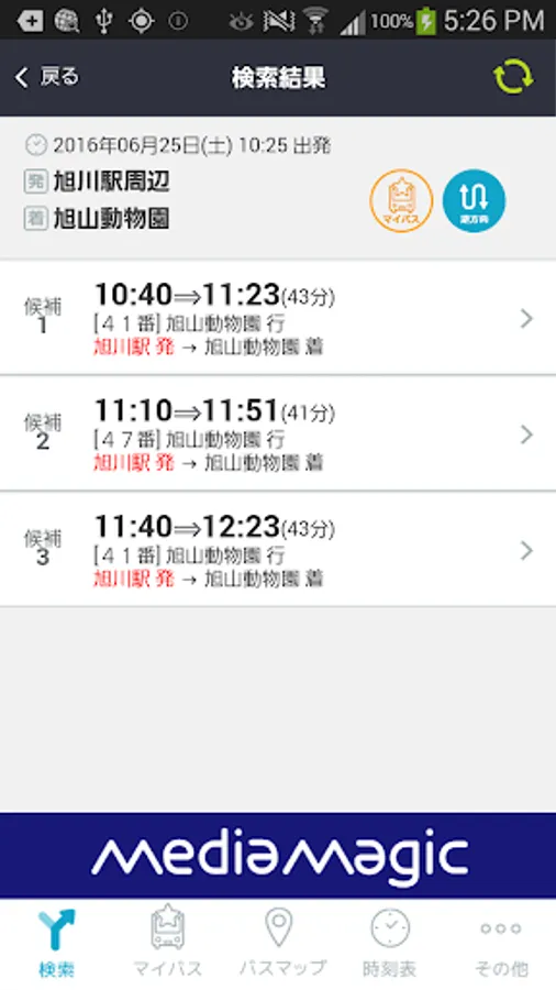 Specify the "destination" and "starting point", when you select the date and time, you can find the path of the bus.