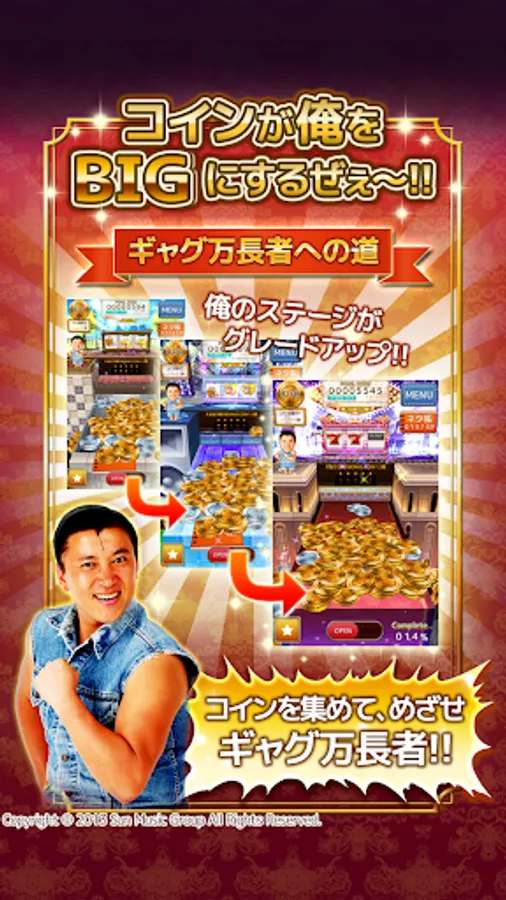 コインを大量に集めると【路上ライブ】⇒【テレビ出演】⇒【レッドカーペット】とステージがランクアップ!
