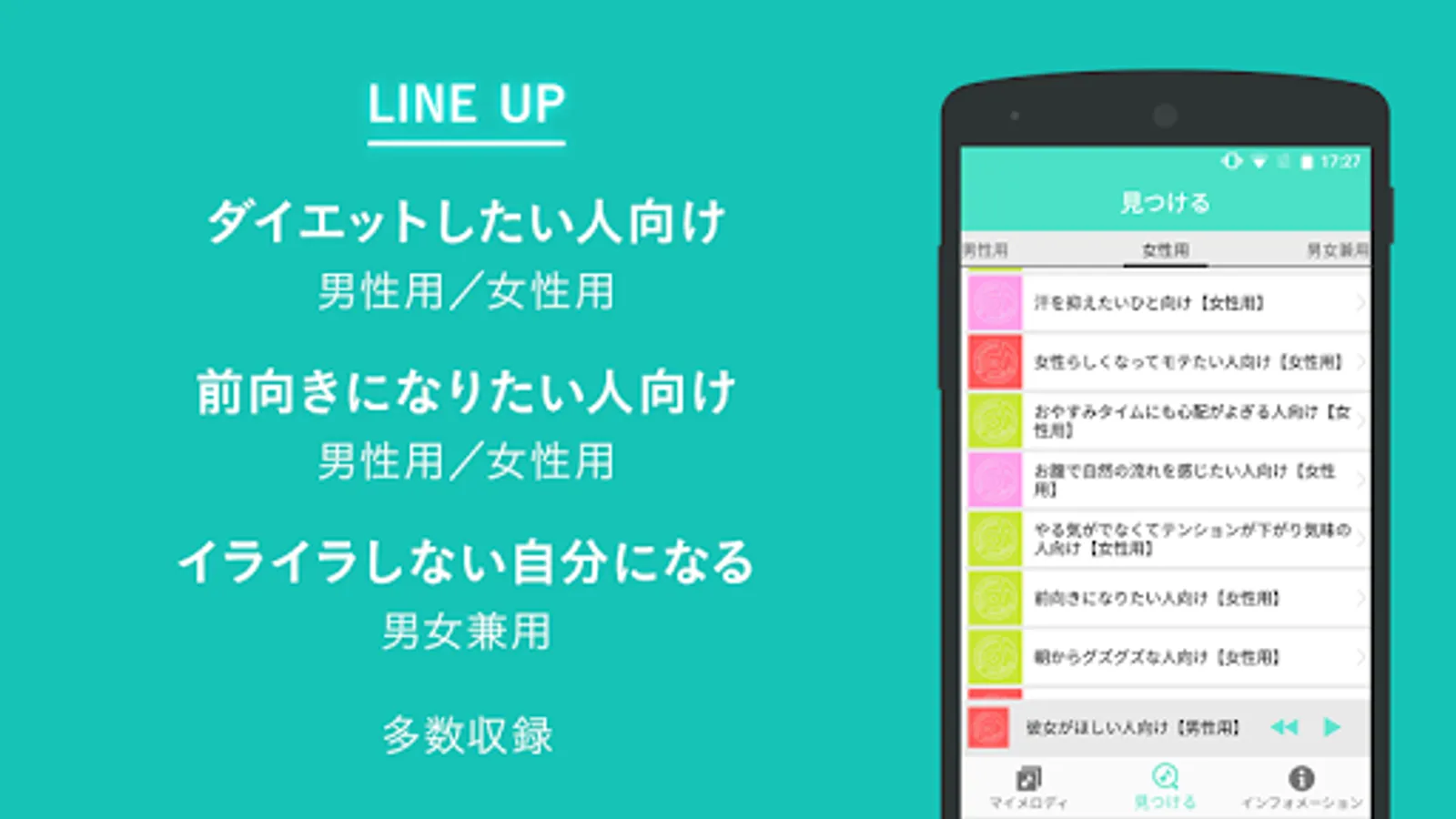 · In the production of the sound source, we use a special program that uses data of psychophysical experiments on functional parts in the brain due to participation of many subjects