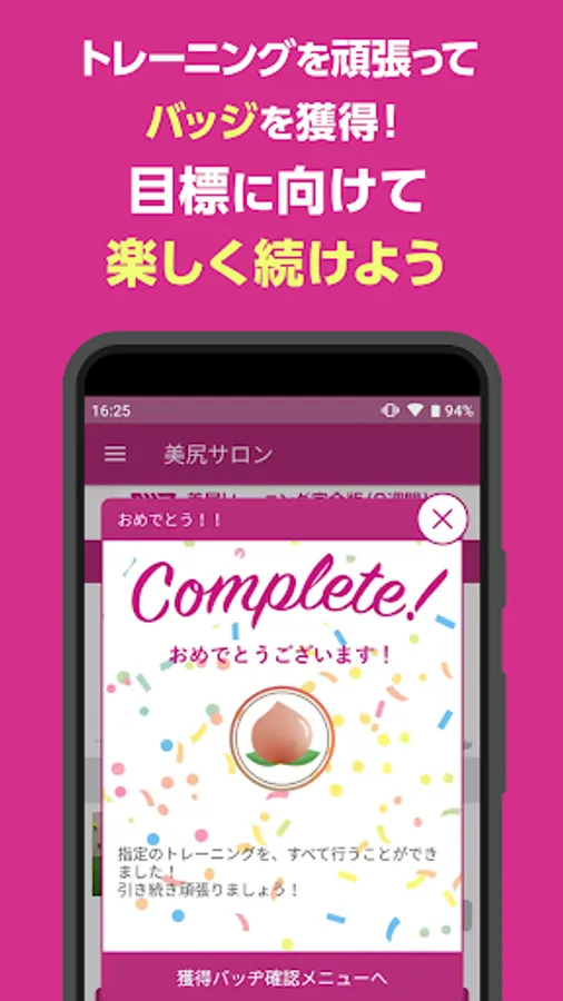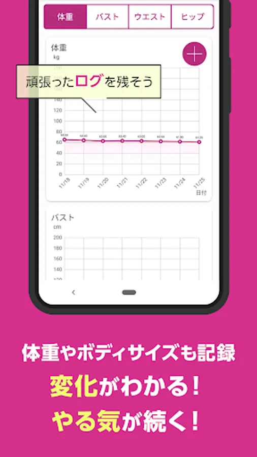 Within the "Beautiful Butt Salon" app, there is a diet log function that allows you to record your daily training history, your body size and weight, photos, and more.
