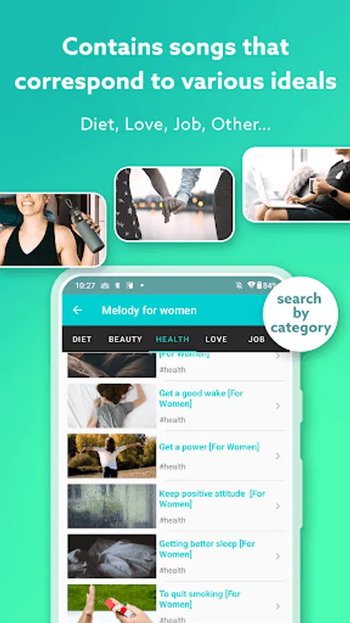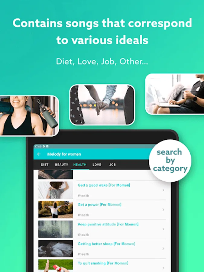 It contains songs for achieving ideals and goals in a wide range of categories such as diet, beauty, health, romance, and work.