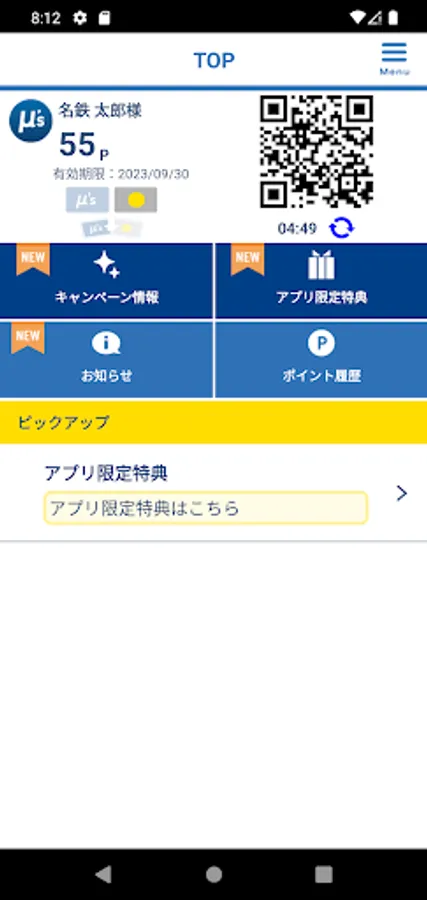 ・ After logging in with the app, the Meitetsu Muse member ID (two-dimensional code) will be displayed.