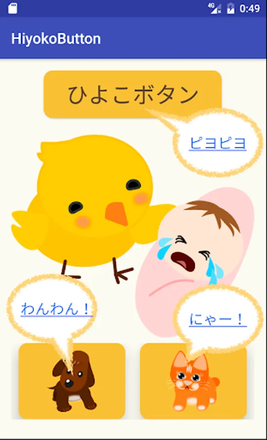 Pressing the “chick button” on the illustration will make another “piyopiyo” sound.