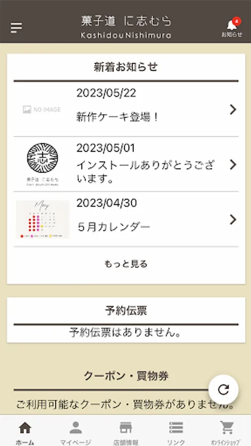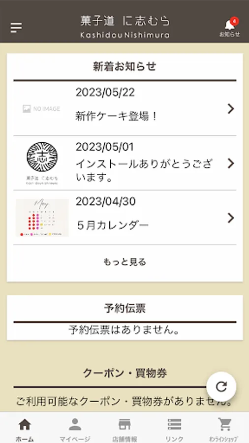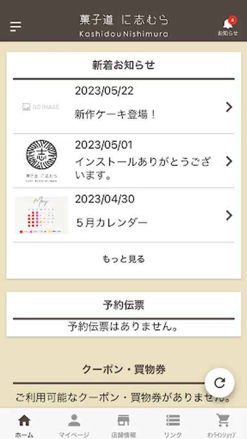お店の最新情報や会員情報、お得なクーポン・買物券、ご予約いただいた予約情報をご確認いただけます。