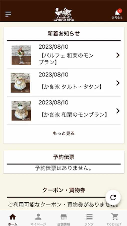 You can check the latest store information, member information, advantageous coupons/shopping tickets, and reservation information.