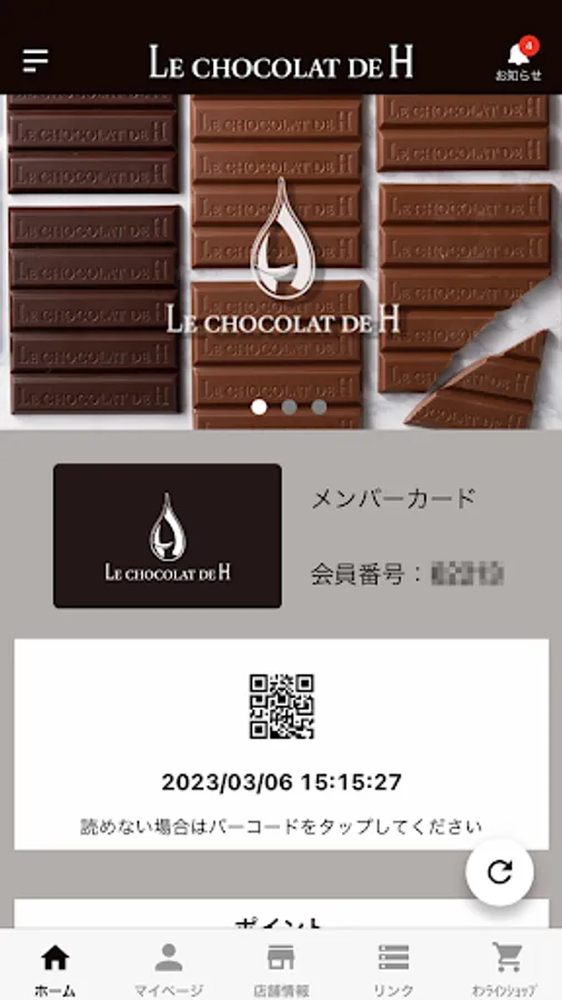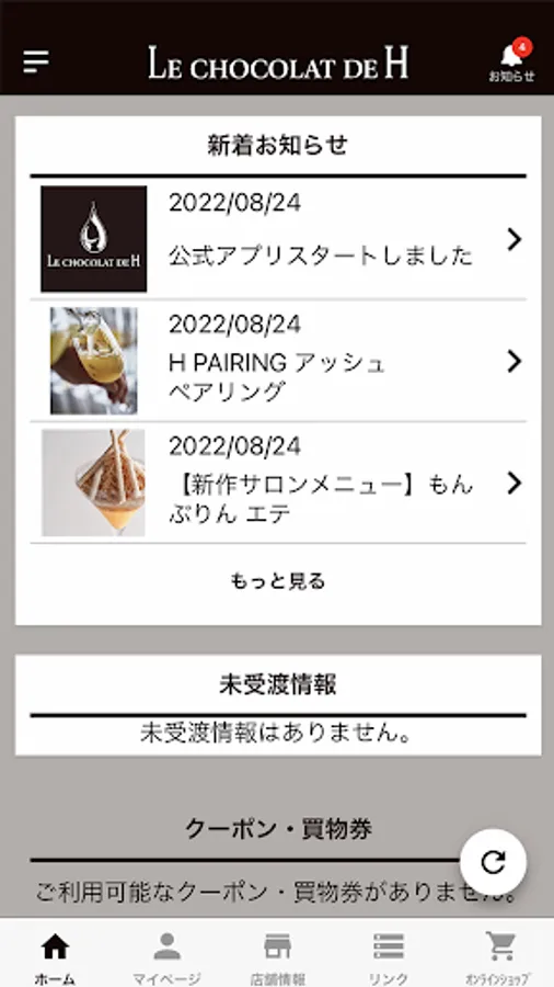 This is a dedicated app for "LE CHOCOLAT DE H", a chocolate shop created by chocolatier Hironobu Tsujiguchi.