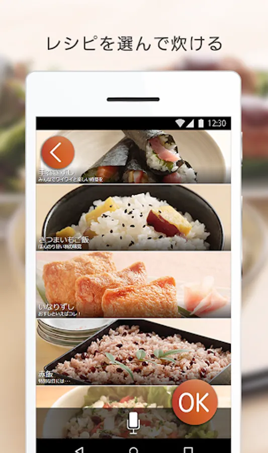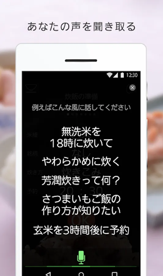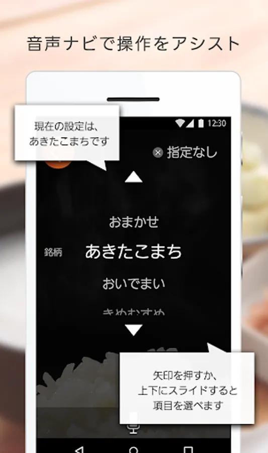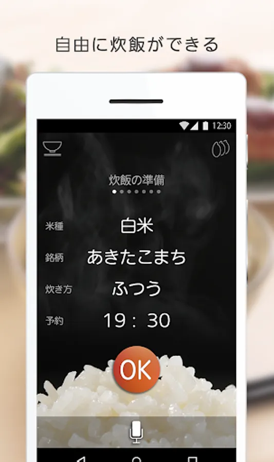 Start the app, or perform a voice input in voice, touch the screen of the smartphone, rice of the type and, cook the way, you can easily set up, such as the reserved time.