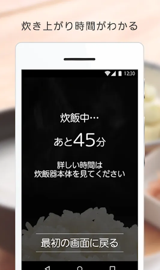 Once you have the settings on the smartphone, by holding a smartphone in rice cooker (※), just press the "cooking button" of the rice cooker body.
