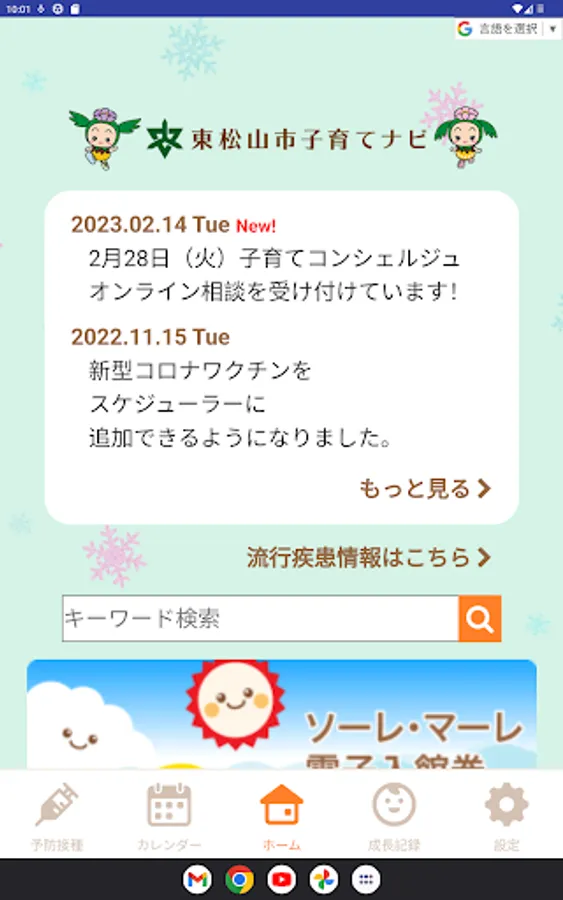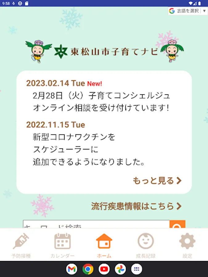 Higashimatsuyama City's child-rearing support app "Child-rearing Navi" is an app that provides vaccination schedule management and child-rearing information tailored to each child.
