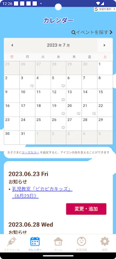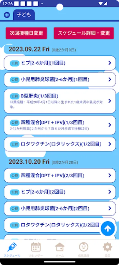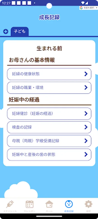 It has a vaccination scheduler function that automatically calculates and corrects complex vaccination schedules, a maternal and child health handbook function that records the growth of your child, and a child-rearing information delivery function.