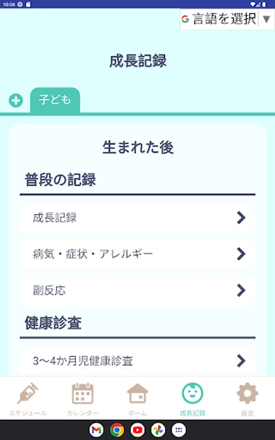 As a maternal and child health handbook, it has a function that allows you to self-manage pregnancy checkup records and infant health checkup growth records with photos, a vaccination scheduler function, and a function for distributing child-raising information from the town.