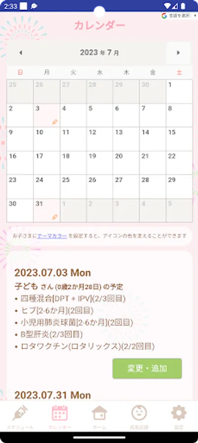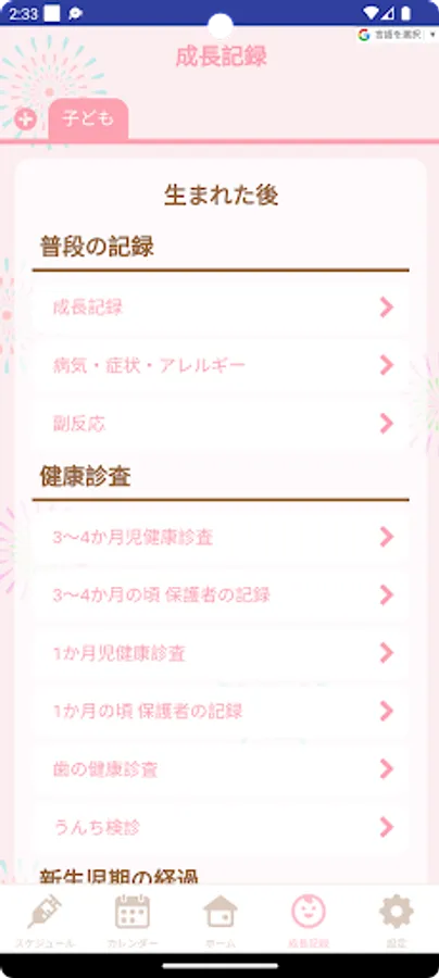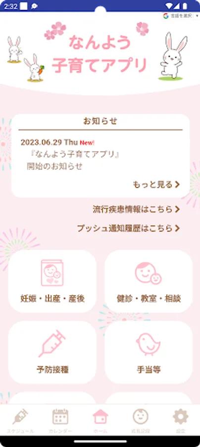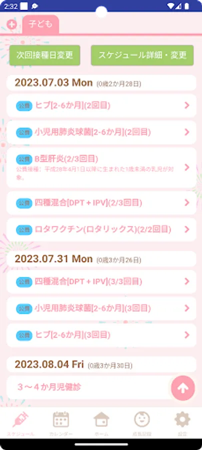 It has a vaccination scheduler function that automatically calculates and corrects complex vaccination schedules, a maternal and child health handbook function that records the growth of your child, and a child-rearing information delivery function.