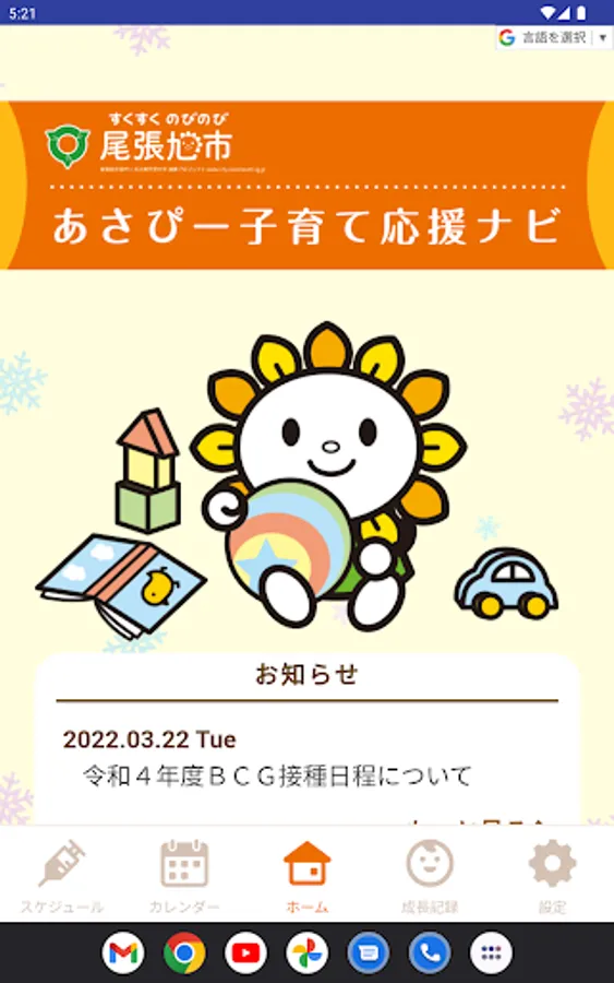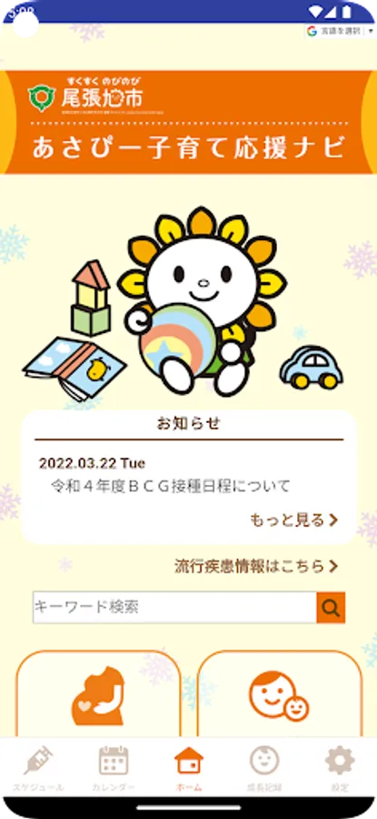 We provide useful information (facility information, event information, etc.) for managing your child's vaccination schedule and raising children.