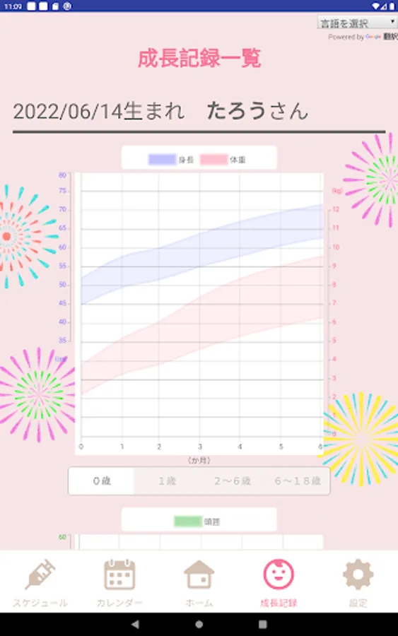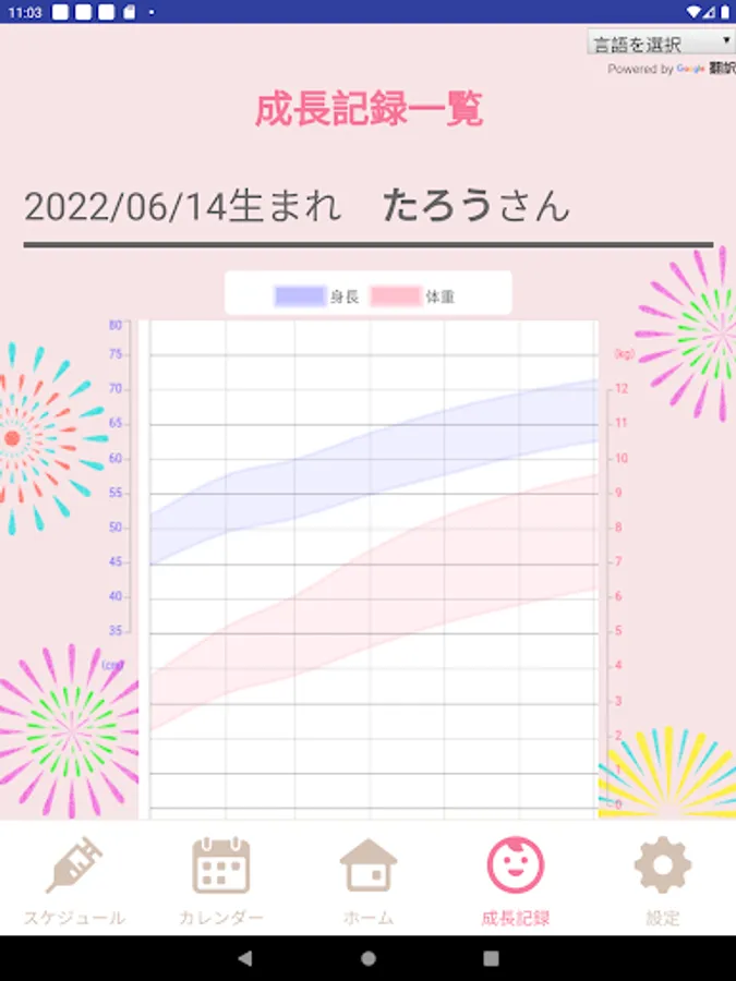 By inputting the height and weight of the child, it is graphed, and there is also a record management function that shows the growth at a glance.