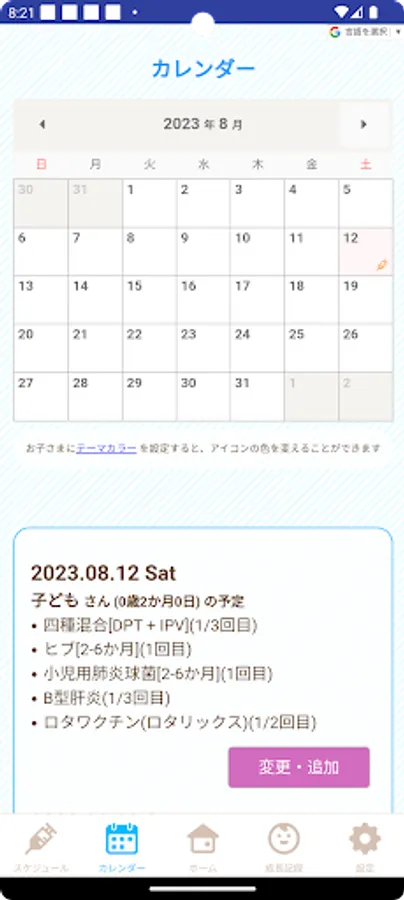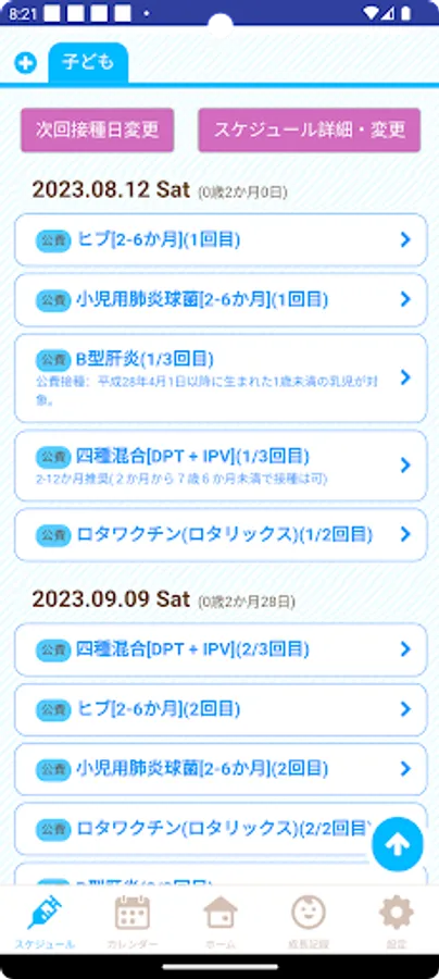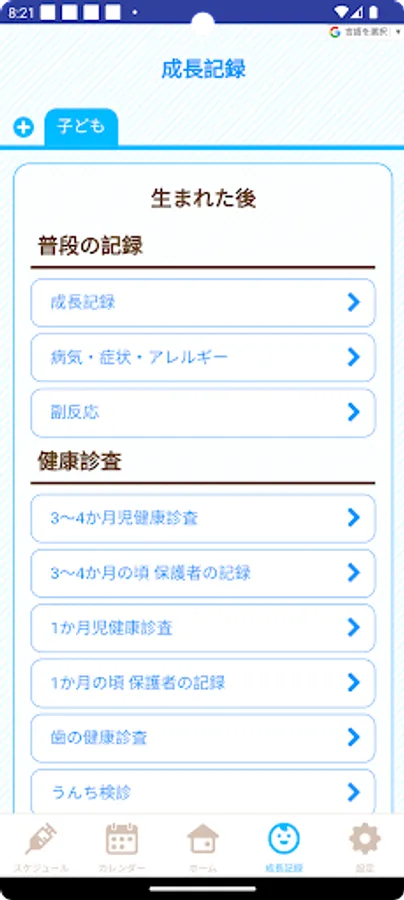 There are many useful functions such as a function to record the growth of children, vaccination schedule management, and delivery of child-rearing information (childcare classes, information on events and child-rearing plazas, health checkups, children's meals, etc.).