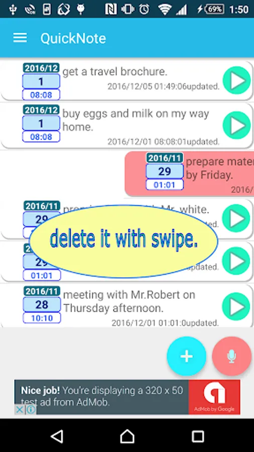 *easily delete it with swipe.