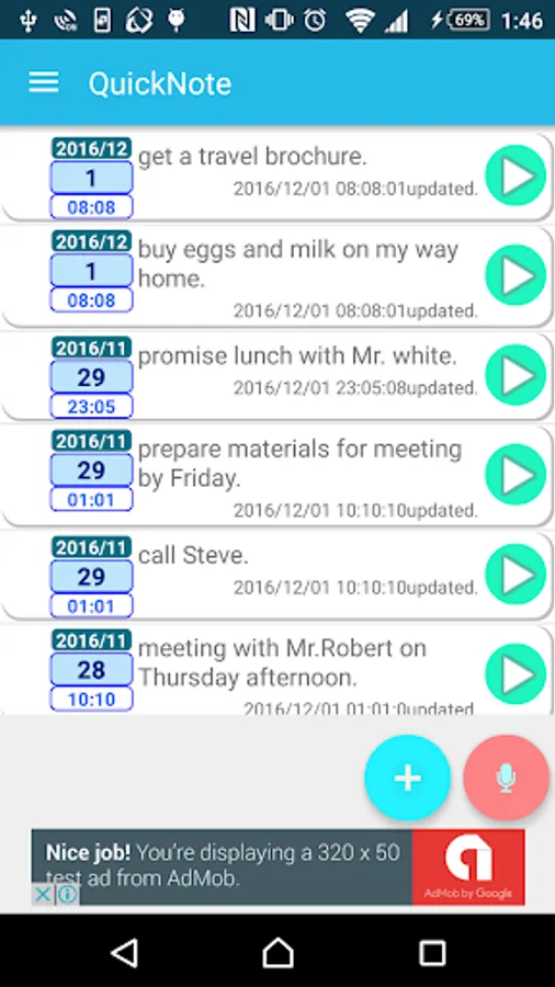 *creating notes is possible by voice inputting at any screen.