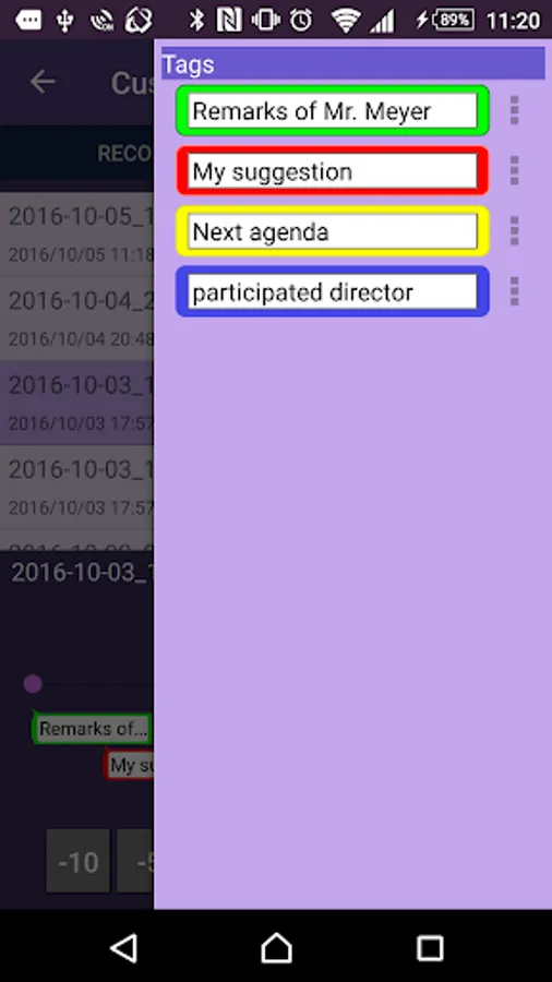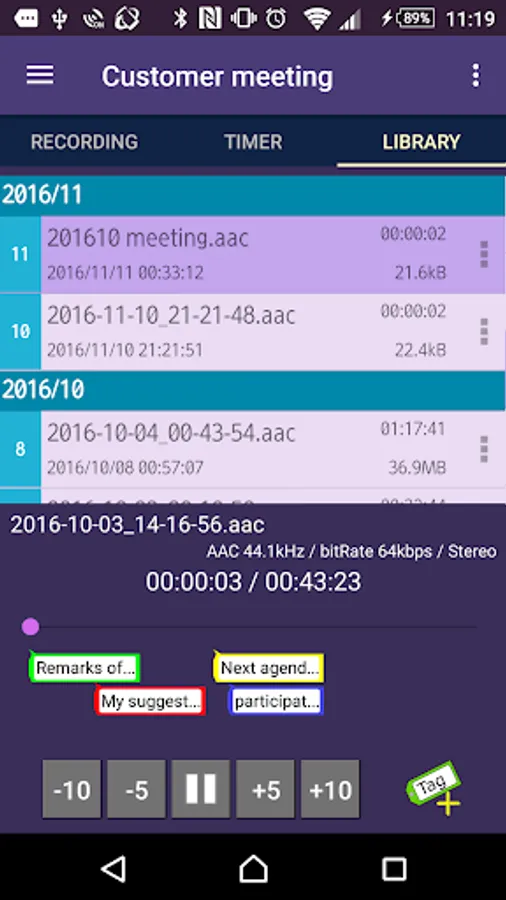Even in such a long time of meetings and seminars, it is convenient easy to be able to playback from that position if to put tag.