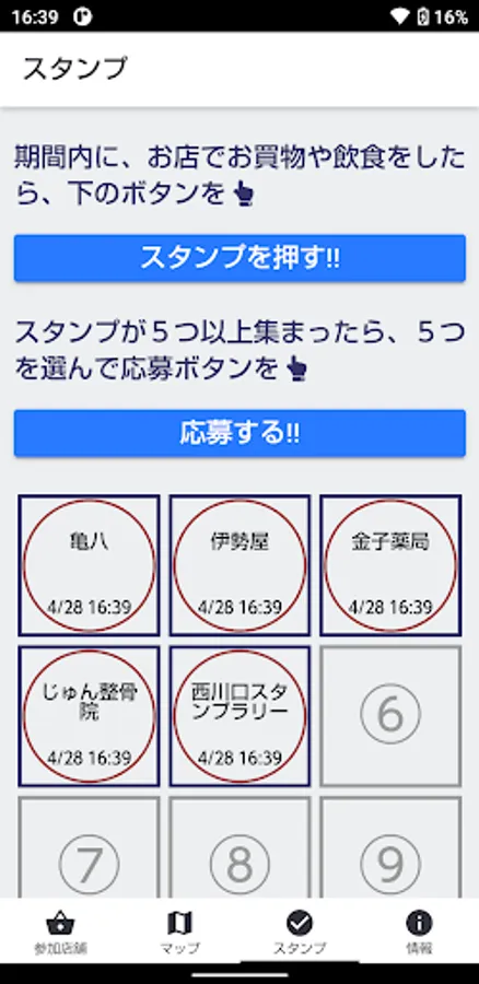 ・The stamp of the same store cannot be stamped multiple times on the same day. Stamps from different stores can be stamped on the same day.