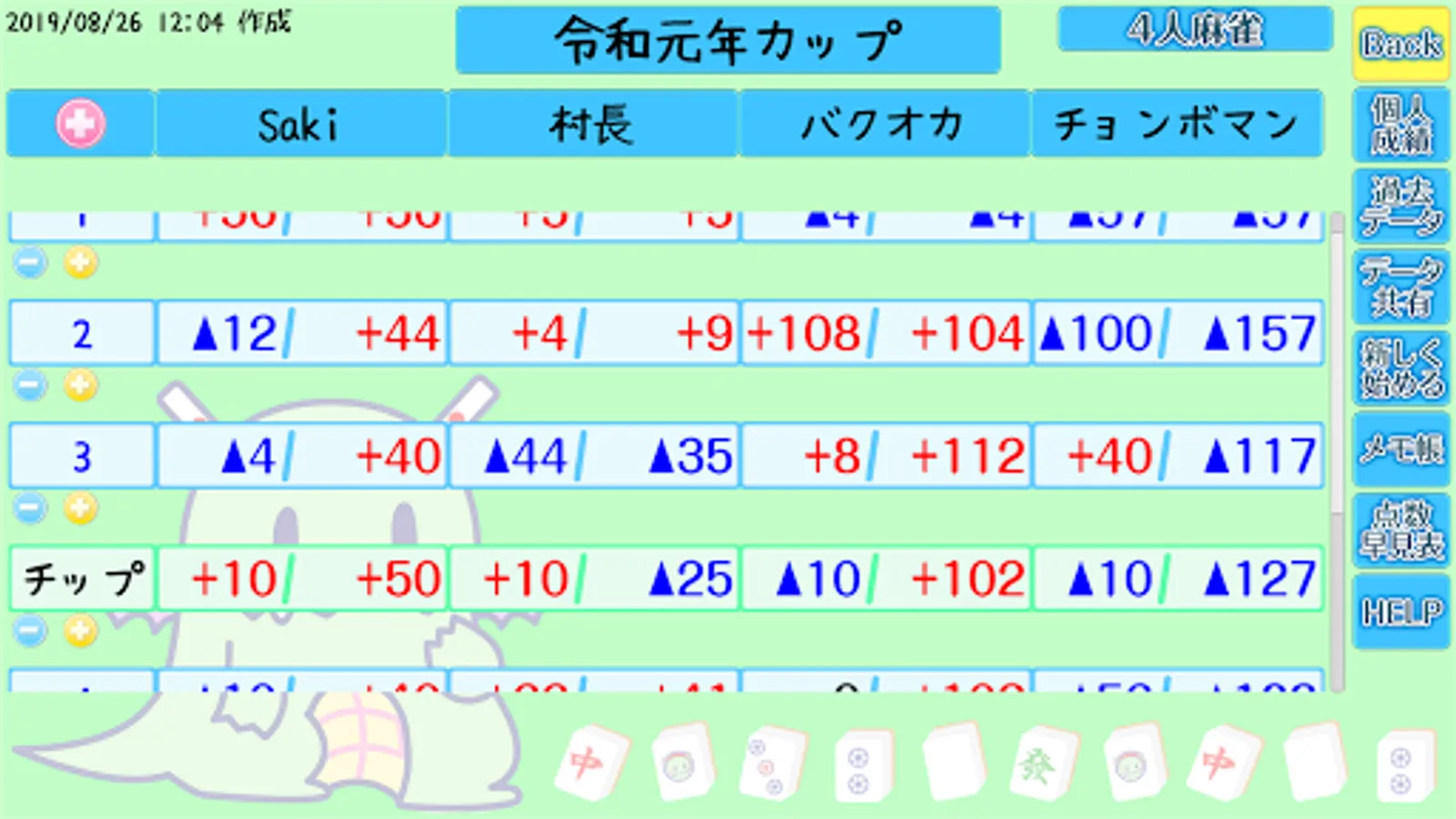 Numerical values other than mahjong scores (chips, etc.) can also be entered.