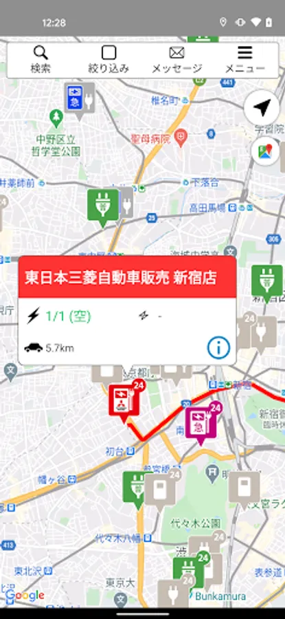 Charging spot map of this application, it is here around, of course, because it is also possible to search from a place name or address, even when you go out long-distance and long period of time, offers a safe and comfortable EV · PHEV.