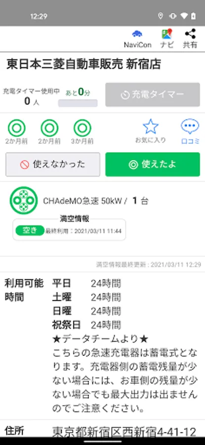 · NCS Mitsuru empty information display of network charging spot (rapid charger "use start time", "use end time" can be confirmed)
